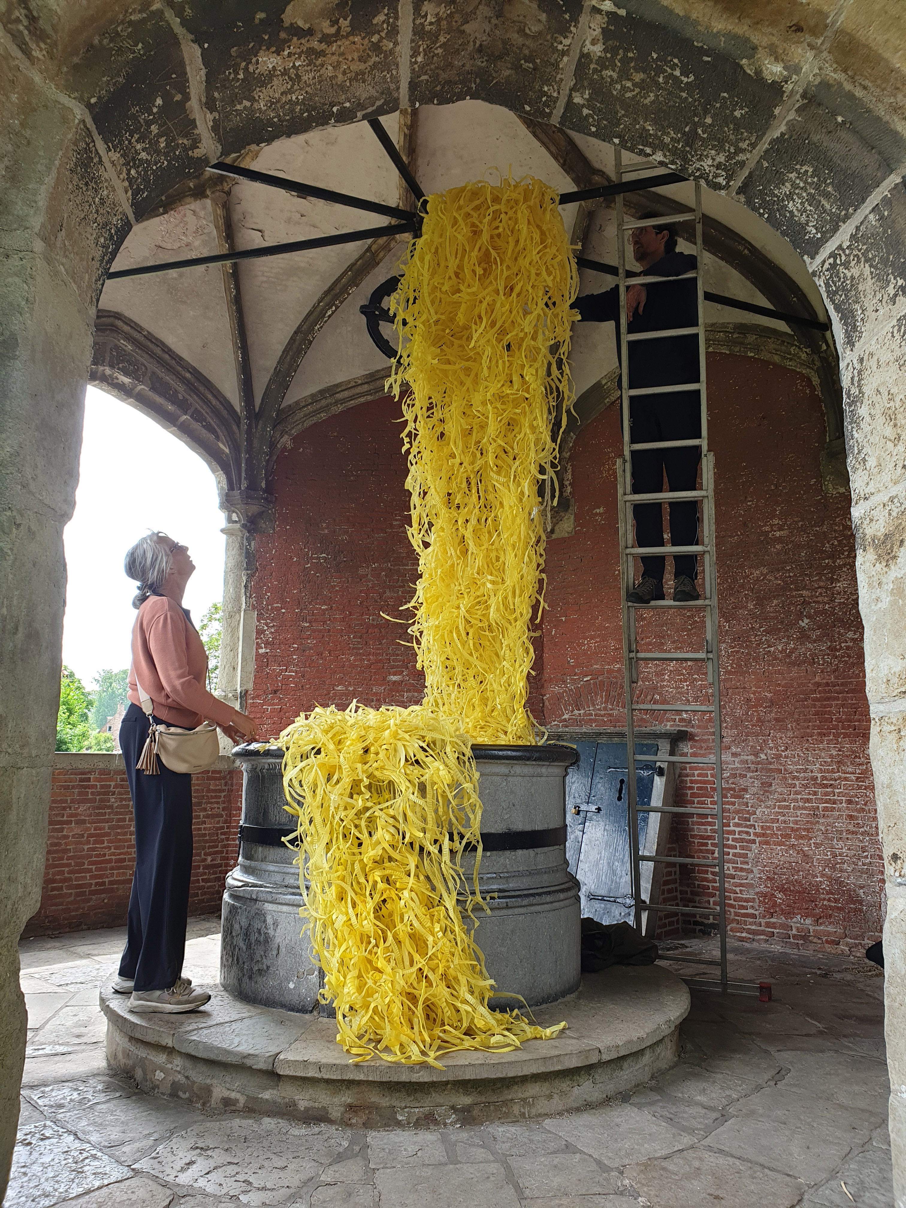 What’s especially interesting about the placement of Yellow Waterfall is that it marks the fourth water-related exhibition installed in Veere’s historic cistern. Built in 1551, the cistern once served Scottish merchants who washed their wool with its water. At that time, Veere was the primary port for Scottish wool.
